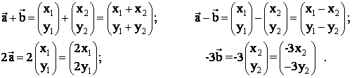 Mbёshtetur nё kёtё zbёrthim, veprimet me vektorёt si mbledhja, zbritja, apo shumёzimi i vektorit me njё numёr, kryhen si nё shembullin mё poshtё.: